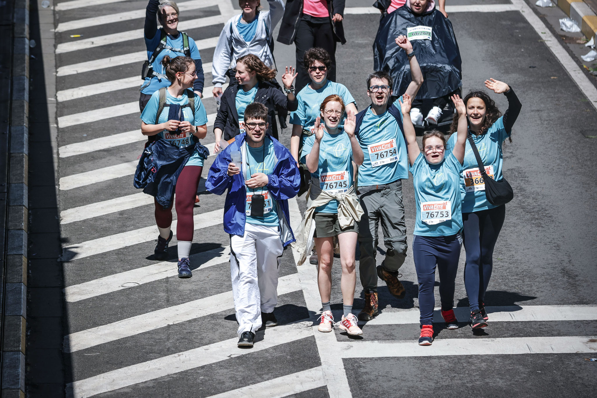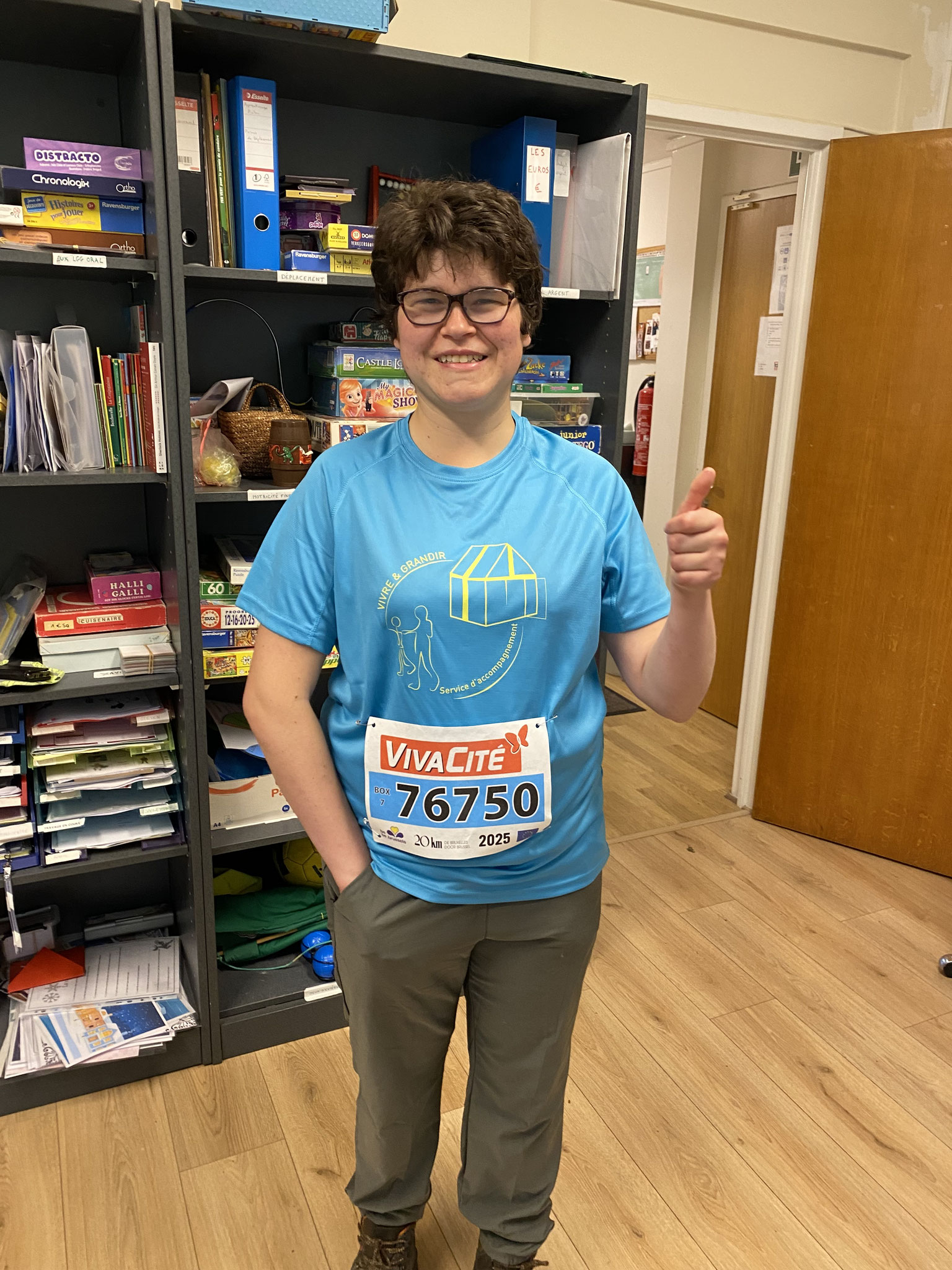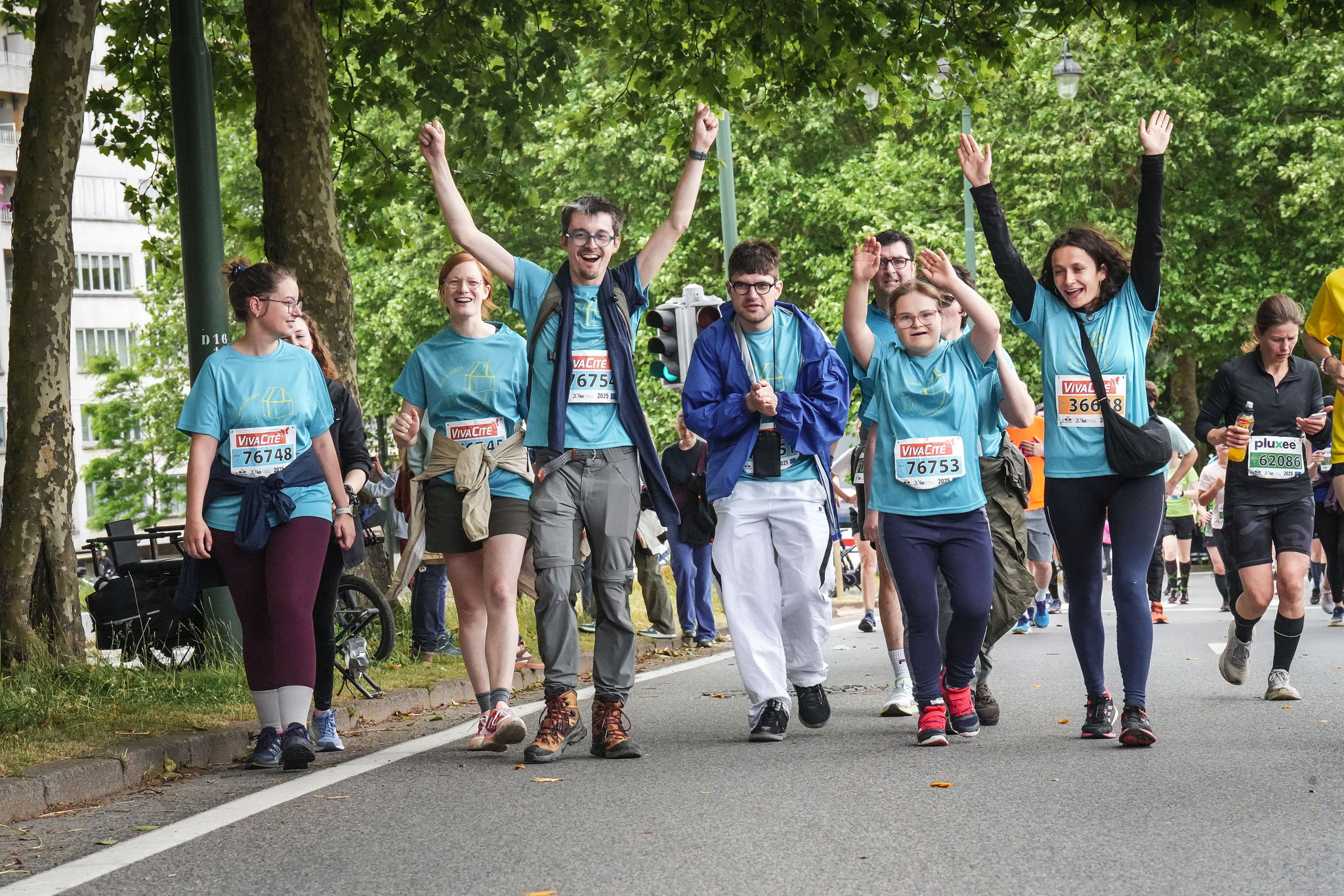 Pour cette première édition, 35 coureurs et marcheurs ont fièrement porté nos couleurs : bénéficiaires, proches, amis, familles des travailleurs, mais aussi quelques nouvelles têtes, attirées par notre association via les réseaux sociaux ou le site officiel des 20 km. Avec ou sans handicap, chacun a avancé à son rythme, dans un esprit d’inclusion, de bienveillance et d’encouragements partagés. Merci à nos 3 bénéficiaires motivés, Nadja, Elisa & Youri, d’avoir relevé le défi à nos côtés!